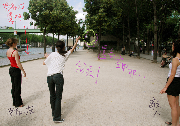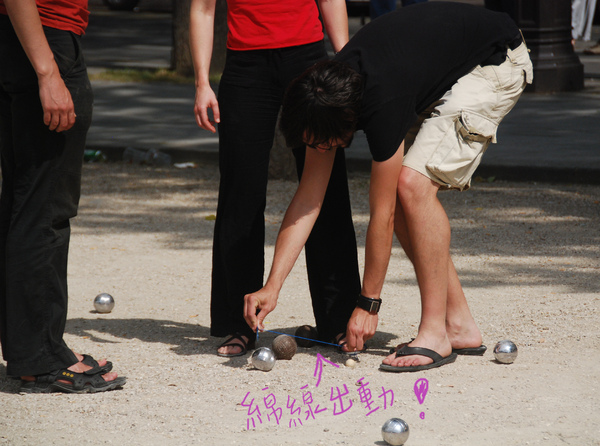 大家雖然抱著遊戲的心情,不過玩得越來越認真;兩隊丟出來的球與標的球球距相當時,就會有人煞有其事的拿出棉線測量。有幾次隊友的球非常接近標的球了,卻不幸的被同隊的人撞開,變成自相殘殺的悲劇~~~